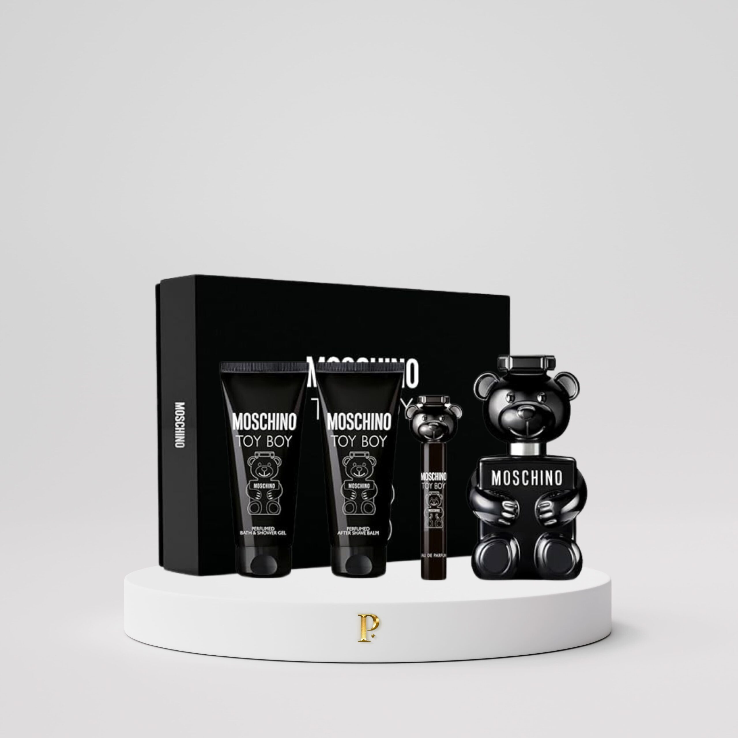 Incluye: Toy Boy 100ml + Perfumero Toy Boy 10ml +  Crema Corporal Toy Boy 100ml + Gel de ducha Toy Boy 100ml